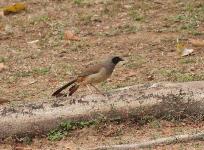 我们发现了,一只正在觅食,似乎正吃得津津有味的黑脸噪鹛呢~