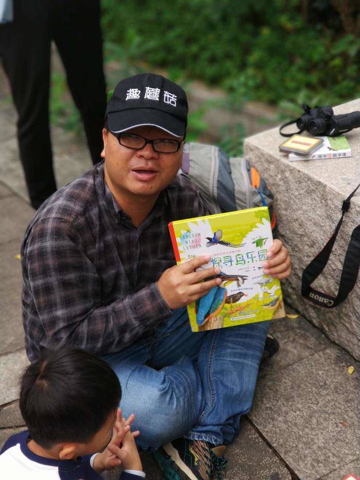 海风老师拿着图鉴,正在为家长和孩子们讲解鸟类知识,小朋友记笔记记得很认真呢。
