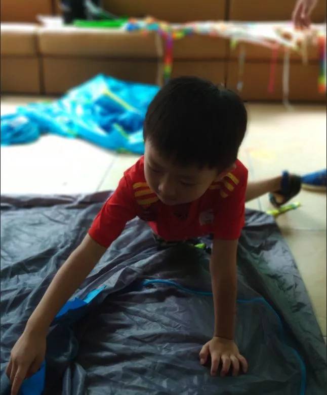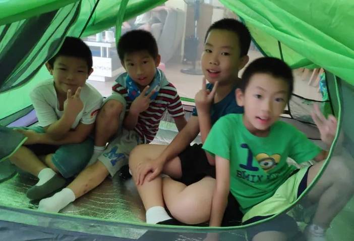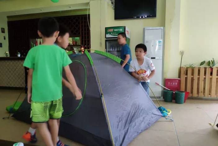 本来计划中今天早上行程是去地质博物馆探秘的,但是,夏季的天气总是阴雨绵绵,为了孩子们的安全,我们选择接着完成昨天没有完成的“露营体验”。