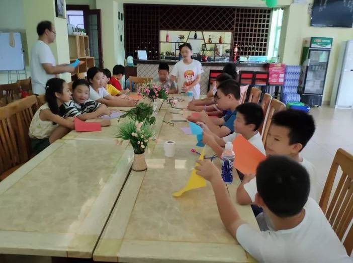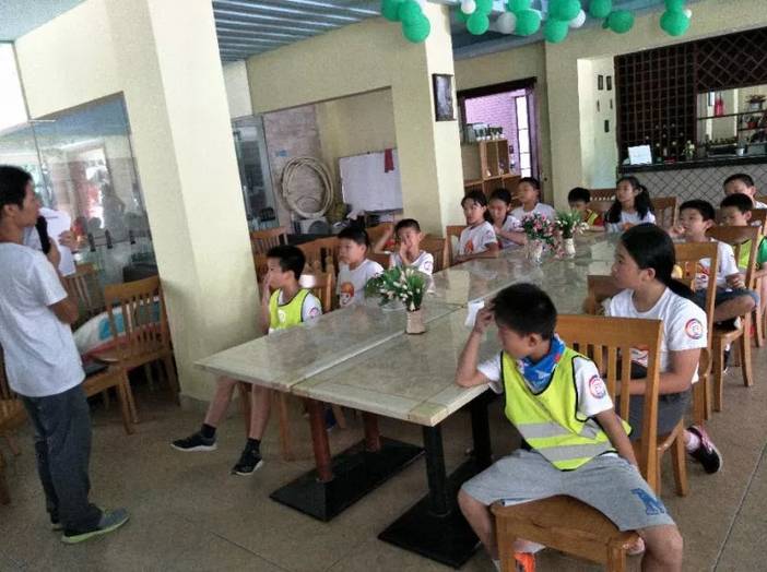 小朋友们各自领取自己的房卡,然后把行李放好,到大厅集合。