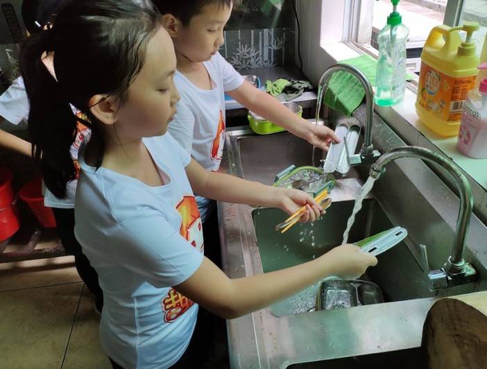 吃完饭,我们是要求大家自己把碗洗干净的。