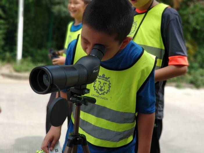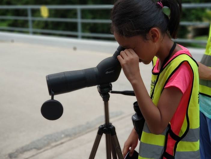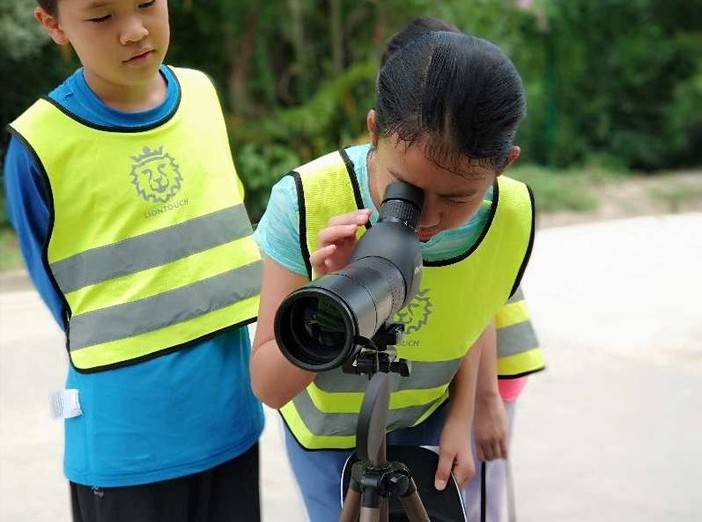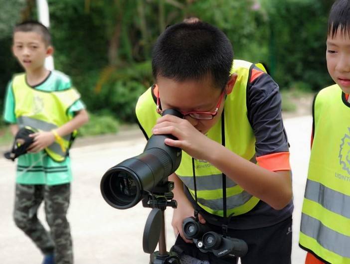 分别告诉大家如何使用望远镜还有观鸟手册。