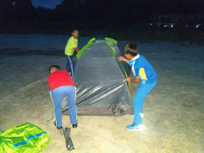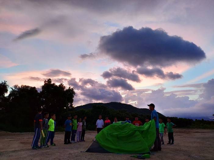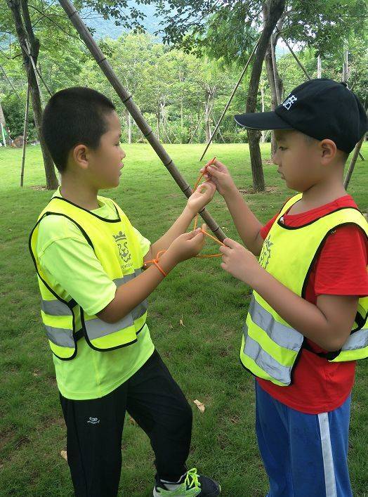导师会教大家如何搭帐篷,如何分工,搭帐篷的选址和一些注意事项,教完之后就会让孩子们自己动手操作啦。