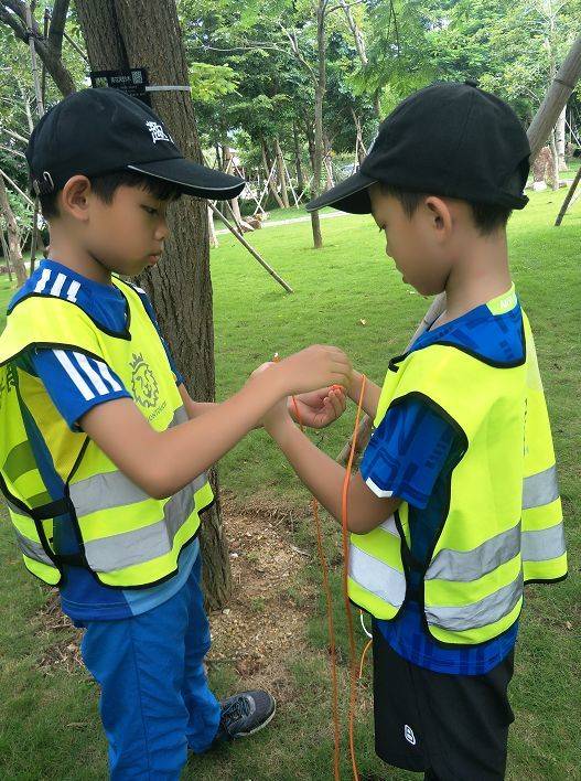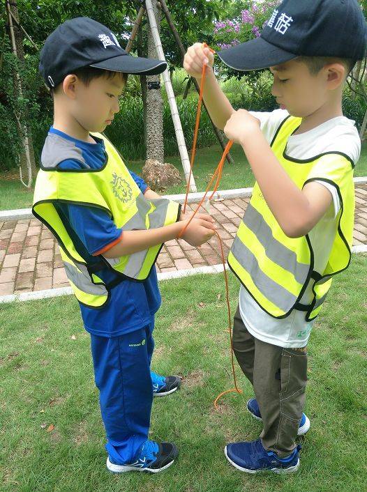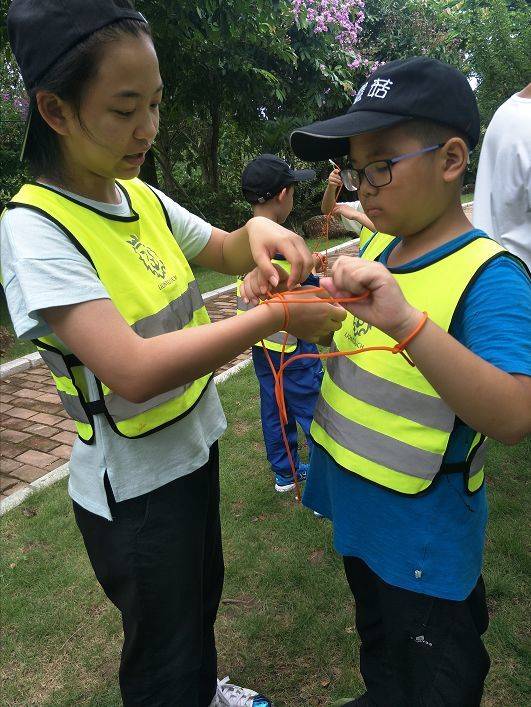 学会绳结之后,导师会教大家玩一个小游戏,需要两个人配合的。