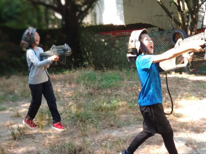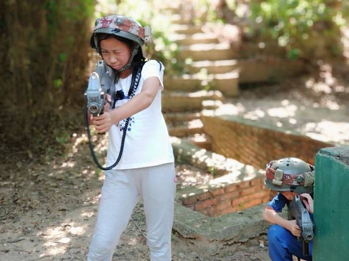 听教练讲完规则,戴上头盔,扛起枪,孩子们已经整装待发了。