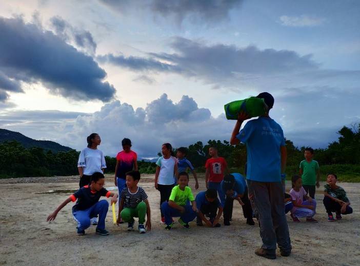 让孩子们吃一些干粮,少量多次饮水,抹一些驱蚊水,我们的“战斗”还没有结束——准备下山了。