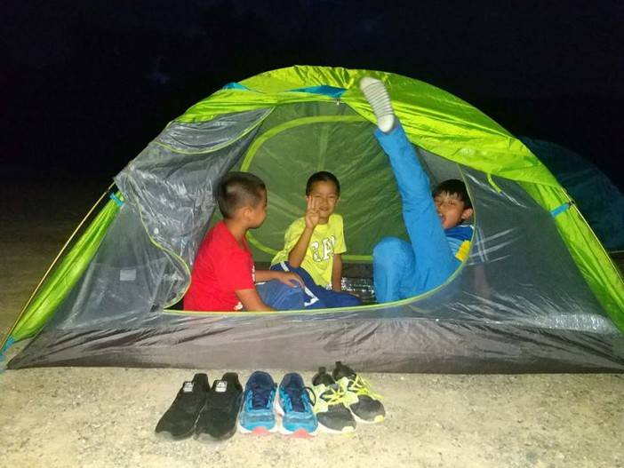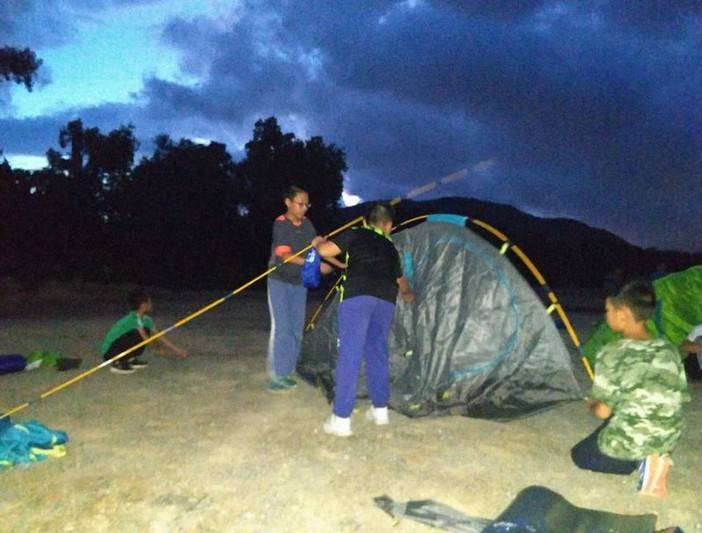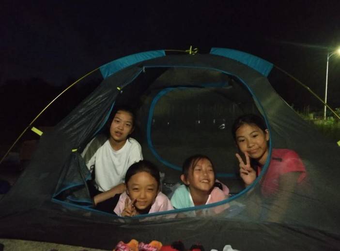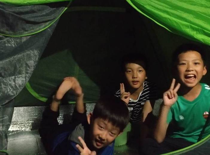 由于这边户外蚊子较多,而且怕夜间有雨,出于孩子们的安全,所以我们只让孩子们体验一下,还是回营地睡觉哦。
