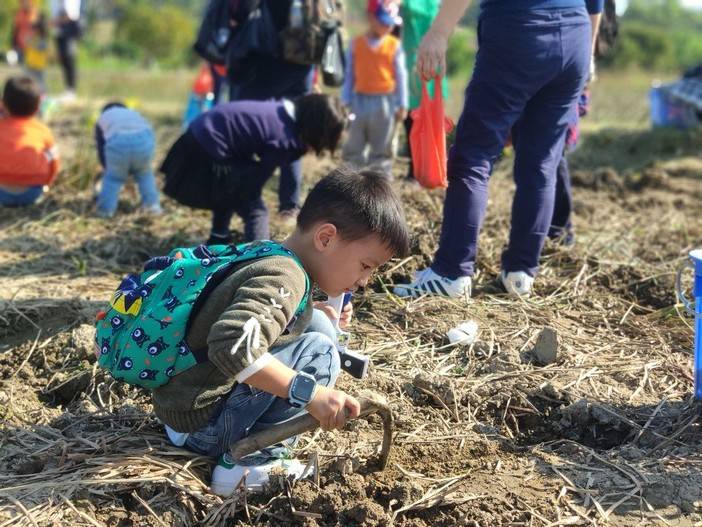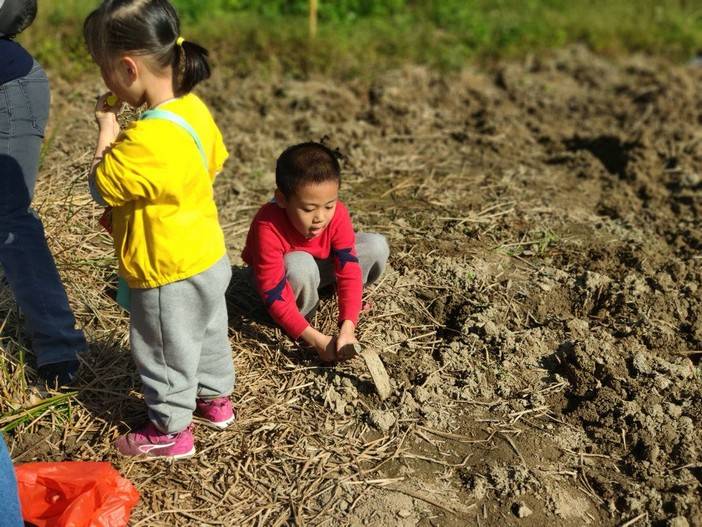都吃过马蹄,但是孩子们还是第一次自己亲手挖马蹄,当从土里挖出马蹄的时候,孩子们是有惊讶又高兴!