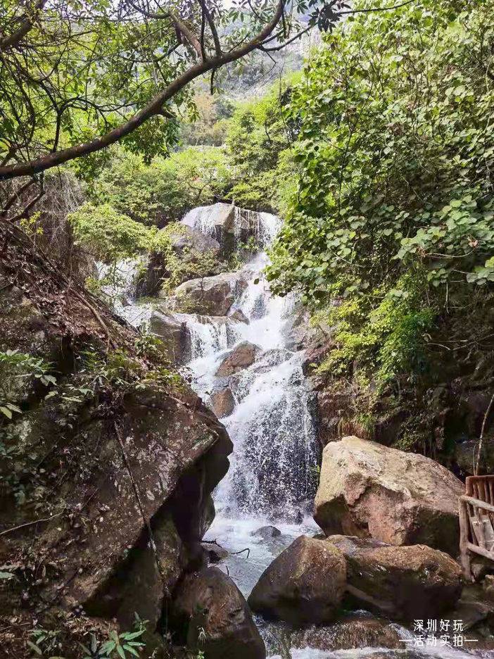 下午游览有“古代桃源今代存”之誉的南昆山,是名副其实的“南粤大氧吧”。观音潭在南昆山镇西边四公里处,有一名胜叫观音赏水。它在一条山溪之中,有三级瀑布相接。最下边的瀑布,水纱之后有一尊白石,似观音端坐,静心观赏碧绿潭中的水。游人透过水纱,可以隐约看见这尊石观音。