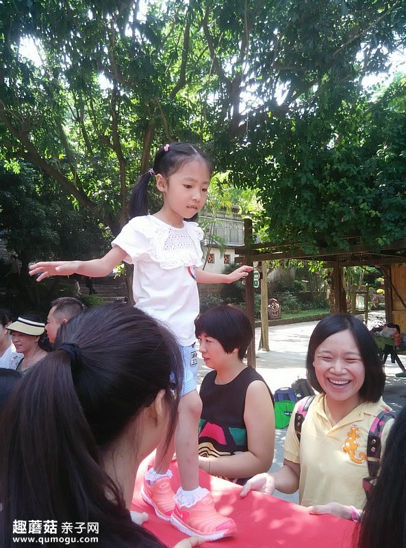 两位大巴车和亲子导师们提前抵达学校,大朋友带着小朋友陆陆续续签到上车顺利抵达我们“鹏程十景”之一的青青世界,同时也获得“广东省环境教育基地”称号孩子们都很乖,有序的排队入园队伍比较庞大,几乎占满大半个篮球场不多说了,先来张大合影 今天活动正式开始游戏一【家庭向前冲】