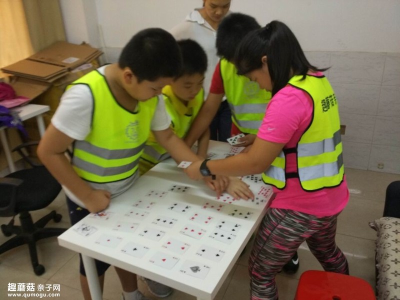 第三个扑克牌游戏,让孩子明白,合作不只是几个人走到一起,人的才能是各不相同的,是需要大家不同分工,共同合作的