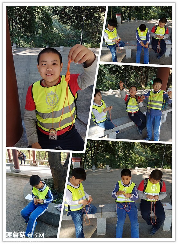 抵达CP5,亲子导师给孩子们讲解童军先锋工程所常用的绳结,记住这几个绳结,今后到野外遇到紧急事故,可以自救。