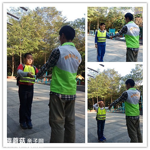出发前趣蘑菇亲子导师带领孩子们做热身运动,并给大家讲解为什么要做热身运动。