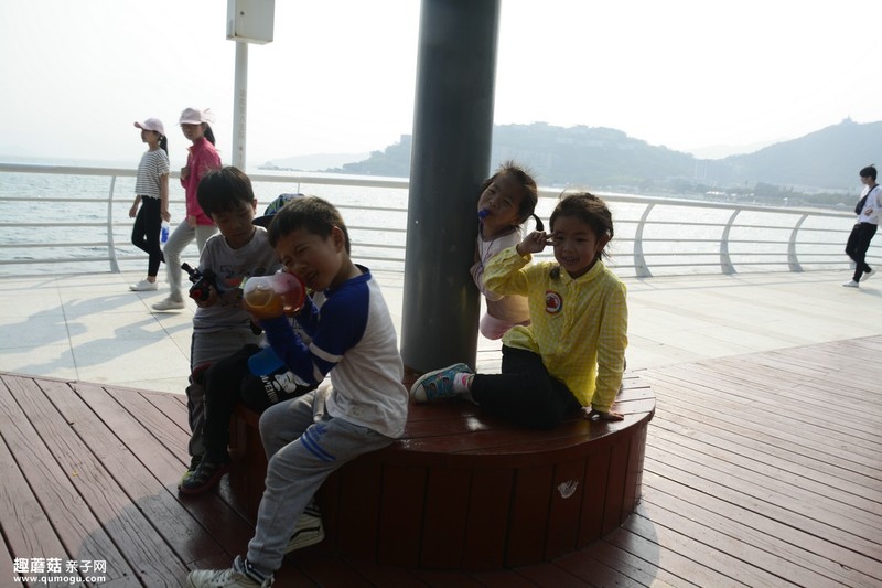 14:00抵达大梅沙,选择一个平台,趣蘑菇亲子导师带领大家一起做热身运动