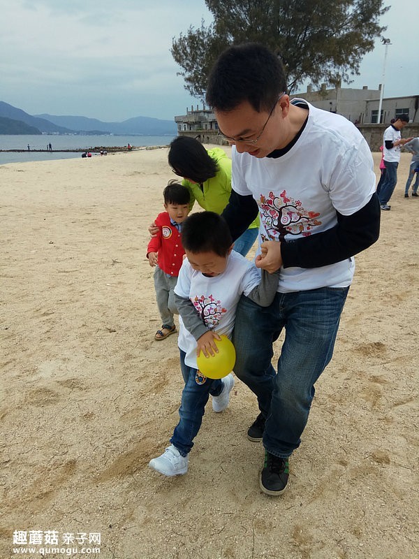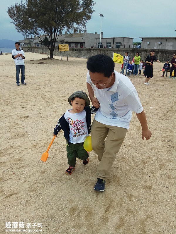 九点许,抵达沙滩野炊场地,开始欢乐的亲子游戏