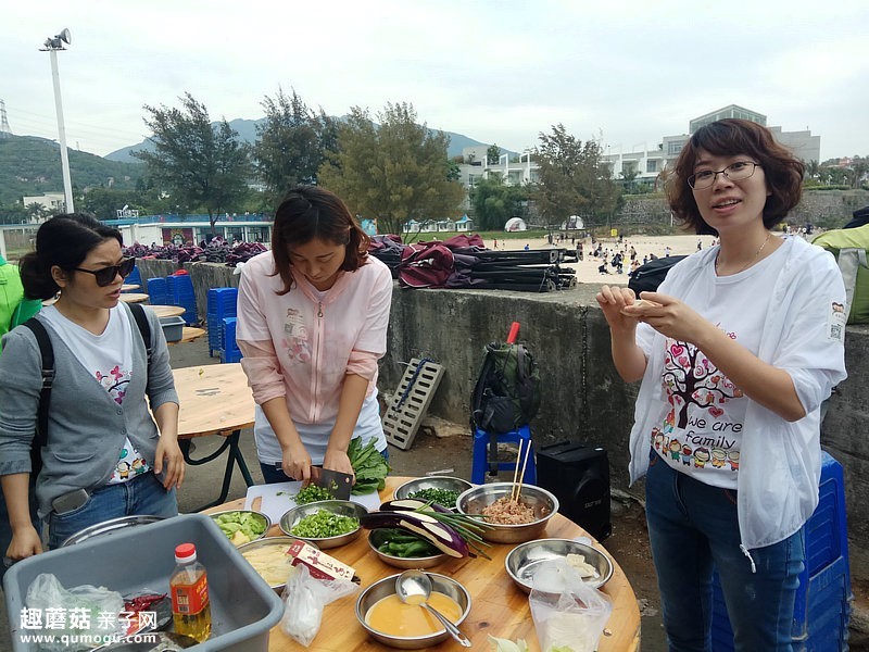 按之前分好的小组,领取野炊食材和工具。队长安排人员负责捕鱼、杀鱼、剥蒜,以及谁负责烧火,谁负责切菜、洗菜,谁负责做菜。(让孩子们看看,大人之间是怎么协作的,从而学习怎么与他人相处、合作等基本社交能力)