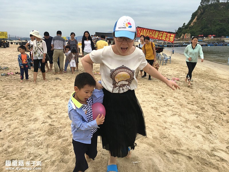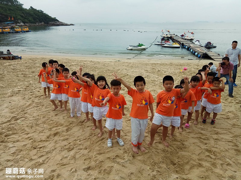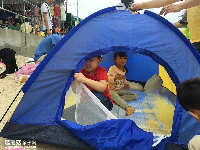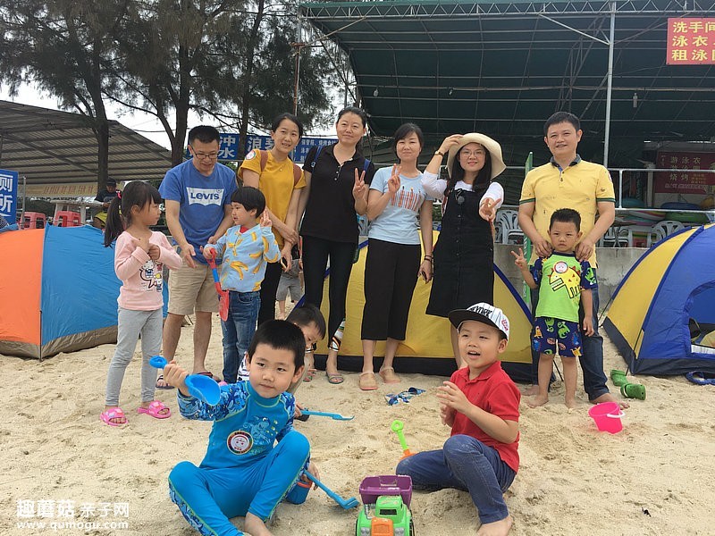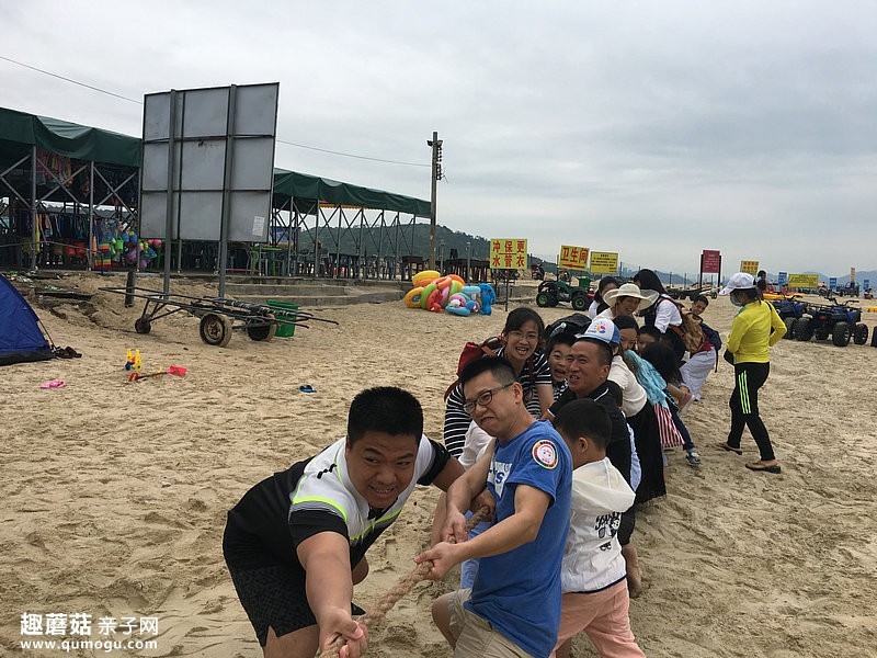 2017.5.19-20趣蘑菇组织深圳市第十二幼儿园某班惠州霞涌金沙滩搭帐篷、亲子拔河、家庭向前冲、堆城堡、篝火晚会、放烟花、抓螃蟹、捡贝壳等欢乐沙滩亲子活动,还有地质博物馆自然探秘,了解海洋是怎样形成的、恐龙灭绝的假说、大鹏半岛的形成和了解矿石的种类。欢乐2天亲子活动,一起回顾下精彩的活动19日中午接到孩子和家长,一路欢歌笑语前往惠州霞涌 路上亲子导师组织孩子们自我介绍、才艺表演。13:45到达酒店,安排房间后前往沙滩开始今天的欢乐之旅小组搭帐篷PK 每个小组搭建一个帐篷,家长带着孩子一起完成,学习野营知识,锻炼孩子们的动手能力。亲子拔河 第一轮:同志VS同学第二轮:亲子VS亲子最后2:2平拔河,需要同学们同心协力,相互团结,锻炼同学们的合作能力。家庭向前冲 家庭之家相互配合,将气球送到终点,增进家长和孩子之间的感情。接下来开启自嗨模式 18:30海边晚餐,吃饱喝足后还有晚上游戏 篝火晚会 大朋友、小朋友一起唱歌、一起跳舞、一起做游戏,都玩得很嗨,这个夜晚属于你我,陪伴最重要。晚上八点许,下了点小雨,家长们打着伞和小朋友一起放烟花 晚上20:30,大家回到酒店,准备休息第二天又是美好的一天早餐后前往沙滩拍照 抓螃蟹、捡贝壳是孩子们的爱好 岛上有小螃蟹还有海虾、石螺、海草等丰富的海产物10:30我们前往大鹏南澳吃午餐吃南澳特色美食——窑鸡餐 鸡腿很好吃,耶!彩蛋涂鸦 绘画是孩子的天赋,今天是520特殊的日子,孩子们将彩蛋绘制好,写上自己的名字,送给陪伴自己的爸爸妈妈,并且对自己的爸爸妈妈说一声:您们辛苦了,我爱您们!地质博物馆探秘 合影留念