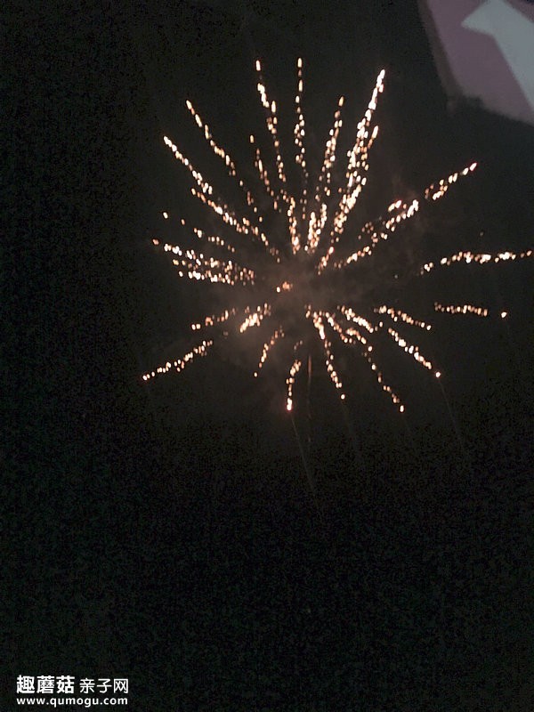 晚上八点许,下了点小雨,家长们打着伞和小朋友一起放烟花