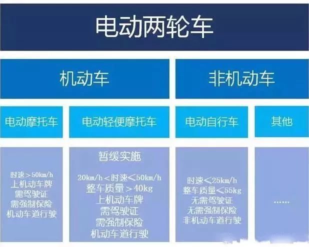 国内的电动两轮车标准将形成由:电动自行车、电动轻便摩托车、电动摩托车构成的技术体系。