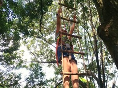 10月2日,今天,我们选择到趣蘑菇广州自然学校,到乡村,去体验粑粑麻麻小时候的童年乐趣。水上拓展、竹筏漂流、徒手抓鱼、云梯速降、丛林射箭、土坡滑草等等,接下来,我们一起回顾下孩子们的精彩的瞬间。水上拓展有趣的水上拓展,掉下去再上来,一次又一次,不在乎掉水,不在乎泥巴,这就是孩子们无忧无虑的童年!竹筏漂流竹林边,竹筏沿小溪顺流而下,不时地下来在边上捞起一把溪水,总会有小鱼或小虾在你手里游!云梯速降穿上安全带,有小伙伴小心翼翼地往上爬,也有小伙伴速度快得你反映不过来。这是需要胆量、体力、平衡力的一项挑战。丛林射箭学习射箭的时候是需要我们调动全身的肌肉来保持弓的平衡的,更需要我们聚精会神的去瞄准靶心,锻炼了孩子们的注意力,让孩子们的注意力更加的集中,不至于经常走神,这对孩子们的学习也是起到很好的作用。土坡滑草坐在滑板上,一溜烟从滑道滑下来,那感觉,可以玩一上午,能释放孩子的天性。徒手抓鱼徒手抓鱼