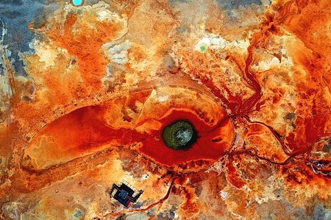 后来到昆仑山下的神圣泉眼【艾肯泉】形状似椭圆的艾肯泉,周围寸草不生且形成了一个红褐色的圆形,艾肯泉的正中央便是汩汩而出的泉水,这便形成了一个巨大的“眼睛”,被人称为“大地之眼”。泉水最终汇入尕斯库勒湖;无人机升起之后,滚滚的泉水,伴随着周边鲜艳又复杂的地道给人一种震撼的感觉。