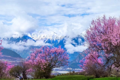 林芝依山傍水雪山环绕,灼灼桃花延绵数里,置身粉色云海,共赴一场春天盛宴。