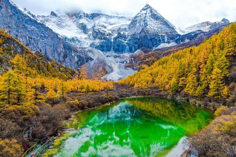 身体状况好的朋友可以试着挑战徒步神山线路,从洛绒牛场徒步前往【牛奶海】(单程5公里),后继续徒步300米至【五色海】,海拔较高,天气变化比较大,徒步往返大概需要5—6个小时;或者是在洛绒牛场先骑马3公里至舍身崖(费用300元/人自理),后继续徒步至牛奶海、五色海,往返约4~5小时;到达目的地饱览海子美景后,大家原路返回,徒步神山对身体素质要求比较高,无论选择哪种方式,请大家一定量力而行。