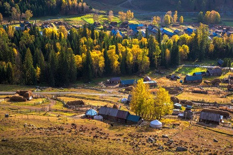 白哈巴村——被称为“西北第一村”、“西北第一哨”,地处中国最西北角,毗邻哈萨克斯坦,村子以蒙古族图瓦人及哈萨克族为主。村庄与雪山、密林、草甸一起,构筑了一副勾魂摄魄的立体画卷。