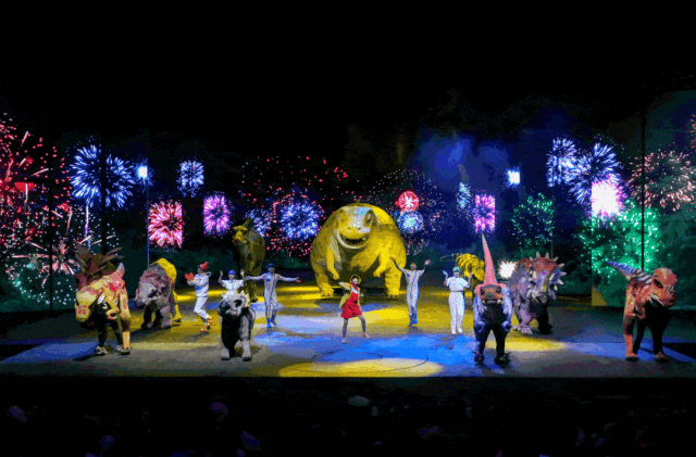 这是一个全家共享天伦之乐的亲子基地。孩子们体验亲子秀《WA!恐龙》,感受艺术启蒙;5D实景剧《大地震》,山崩地裂、真情永驻;沉浸式演出《南海一号》《广州起义》,惊涛骇浪、战火纷飞;恐怖研究院、聊斋惊魂鬼屋、虚拟空间、幻影空间等大型互动体验项目,惊心动魄、光怪陆离;主秀《广东千古情》是一生必看的演出,视觉盛宴,心灵震撼……这里每天上演一场场不落幕的艺术盛宴! )