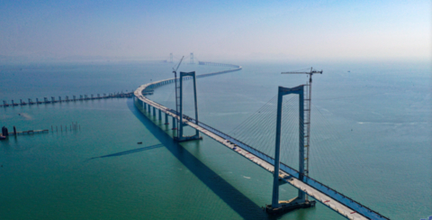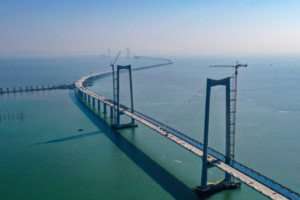 深中通道是粤港澳大湾区的核心通道,是集“桥、岛、隧、水下互通”于一体的世界级集群工程,是珠三角“深莞惠”与“珠中江”两大城市群之间的公路直连通道 ,项目全长约 24 公里,其中桥梁工程长约 17 公里,用时8年建设的,采用设计速度 100 公里/小时的双向 8 车道高速公路技术标准,是地处粤港澳大湾区核心区域的超级工程。