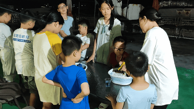 结营前晚上,设置特别的荧光晚会,同学们一起歌唱,一起欢呼,增加队员之间友谊。