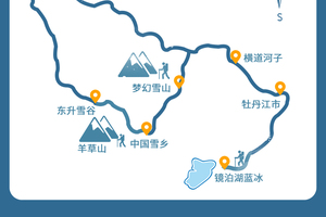 雪乡-(30km,车程约1h)-徒步梦幻雪山(徒步10KM,大概5h)-牡丹江市(200KM,车程约4h)