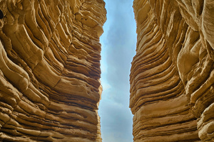 在鄯善县境内火焰山中段,有一个历史文化悠久、自然景观雄奇壮美的峡谷,这就是——吐峪沟大峡谷。吐峪沟大峡谷内怪石嶙峋,山间小溪斗折蛇行向南流去。大峡谷的东西两壁,素有“天然火墙”之称,温度最高可达60摄氏度。沟谷两岸山体五彩缤纷,且颜色随天气阴晴雨雾而变化无穷。吐峪沟大峡谷犹如一位身穿艾德莱丝绸的少女,千百年来一直身居在鄯善县境内的火焰山中段,一年四季,织阳光为裳,扯薄雾为纱。