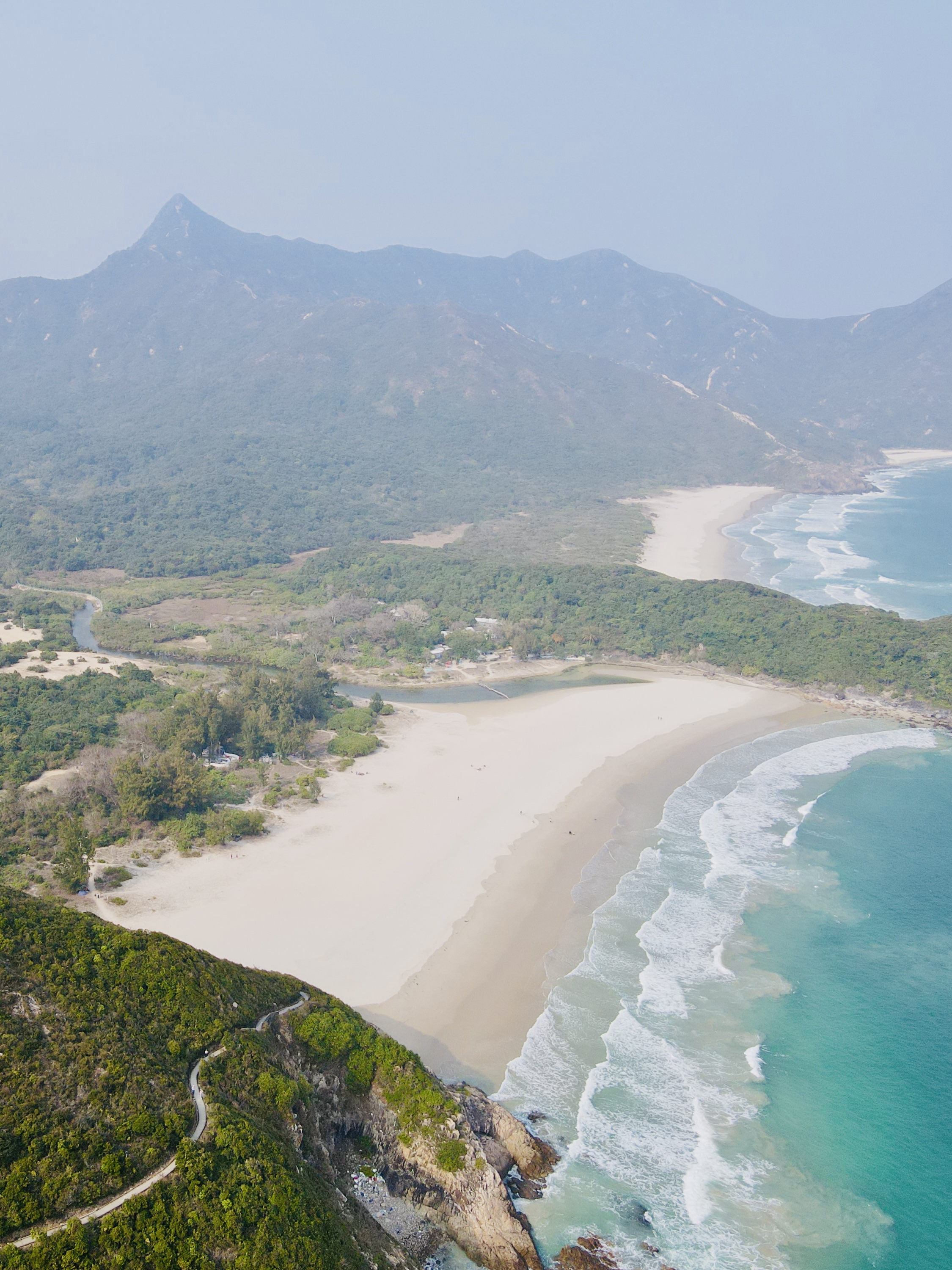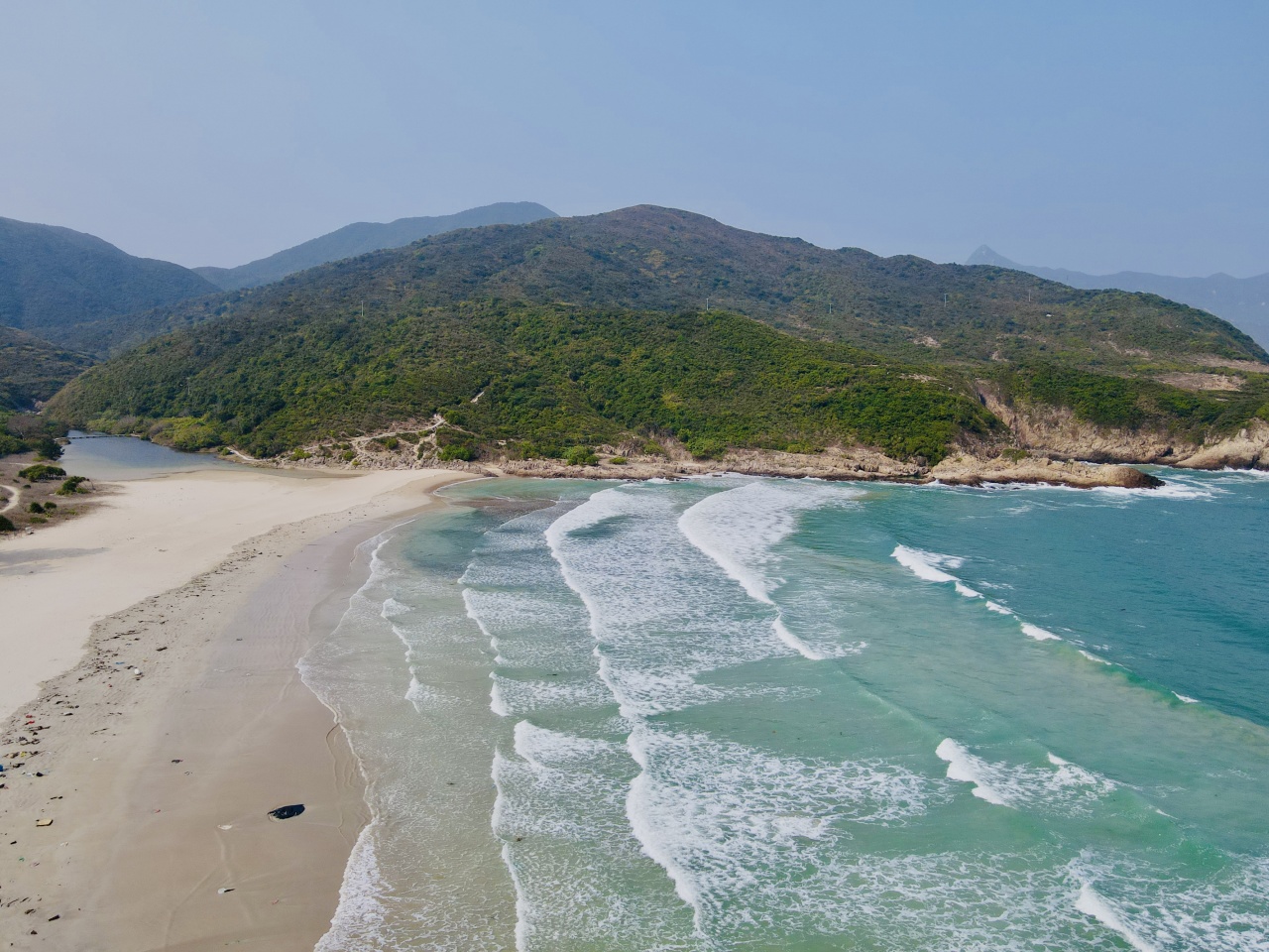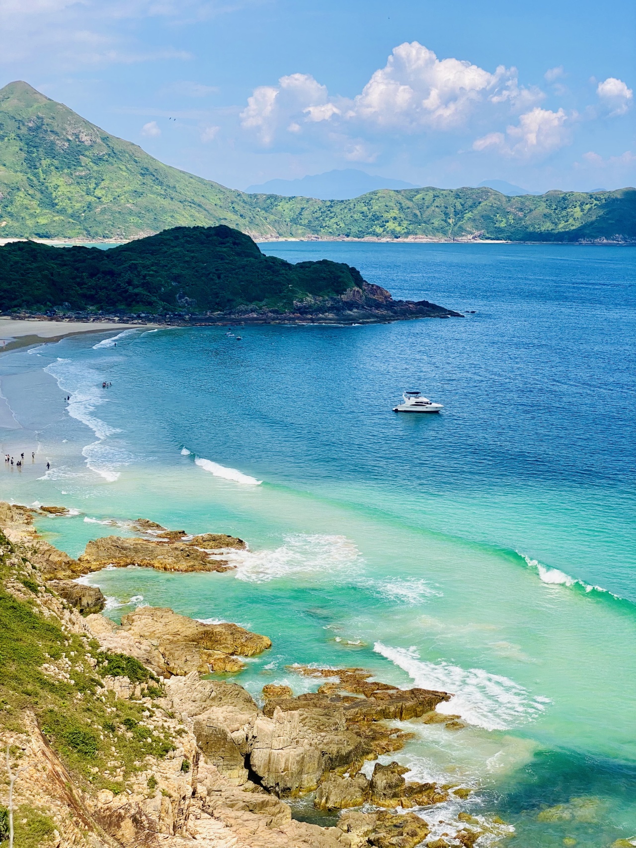 这里水清沙幼,于群山之中,被喻为“西贡半岛的明珠”属于麦理浩径第二段。西湾沙滩中央位置有一石排,将沙滩分成左右两滩,浪接浪接续而来,极目海天接成一线,海风不止,阳光灿烂。