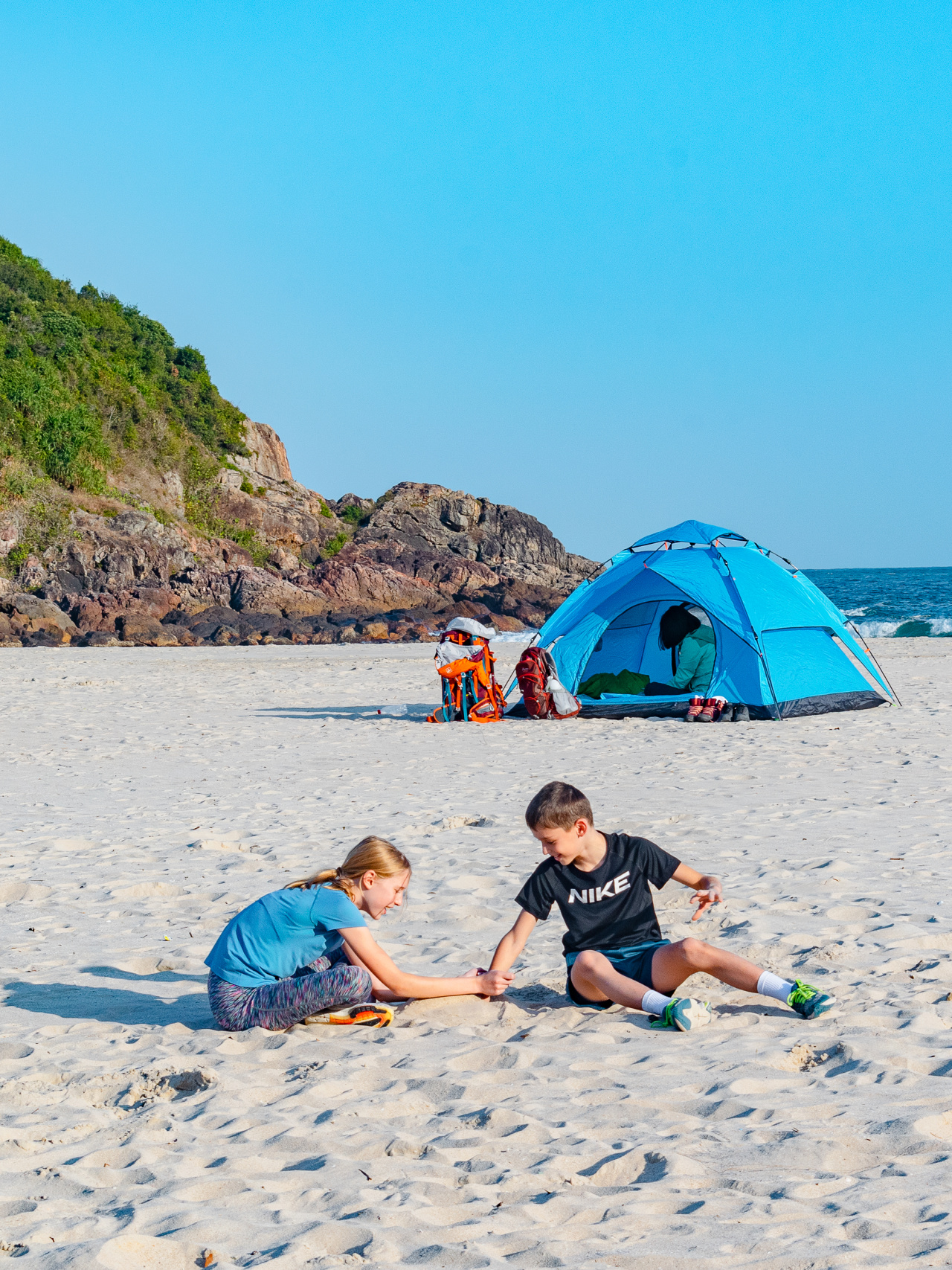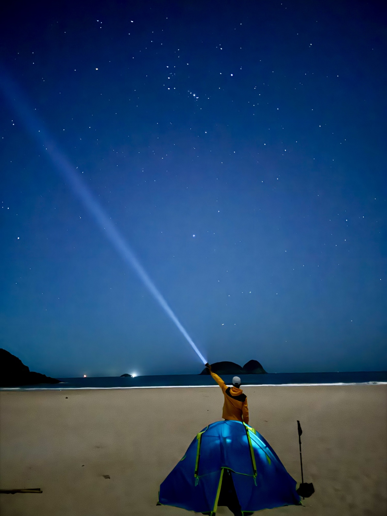 咸田湾应该算是麦理浩径二段最大的也是配套设施比较完善的一个沙滩,水清沙细浪也不大,虽然交通不是很方便,但还是吸引了很多的游客。所以晚上沙滩上布满了五颜六色的帐篷,甚为壮观。