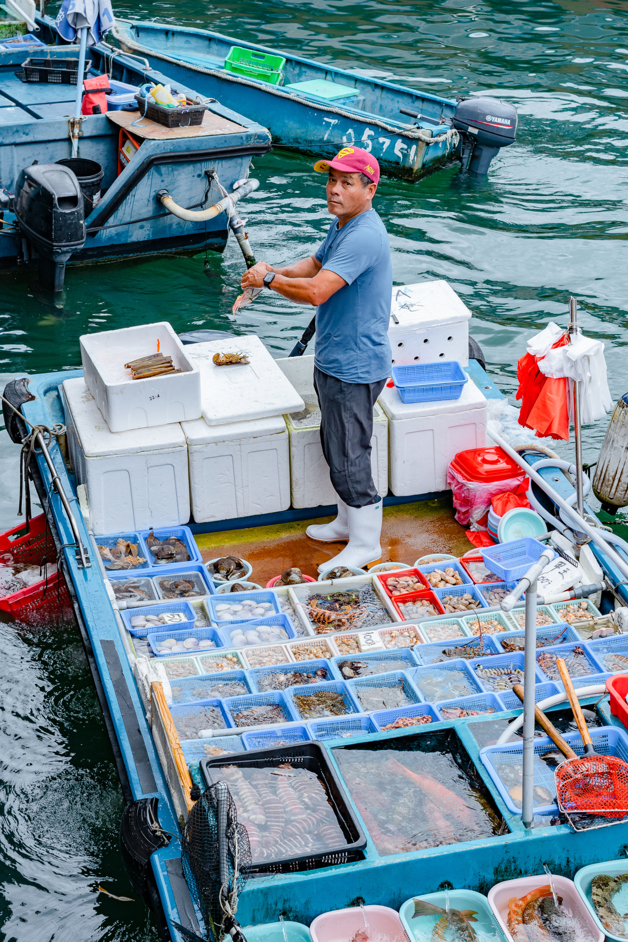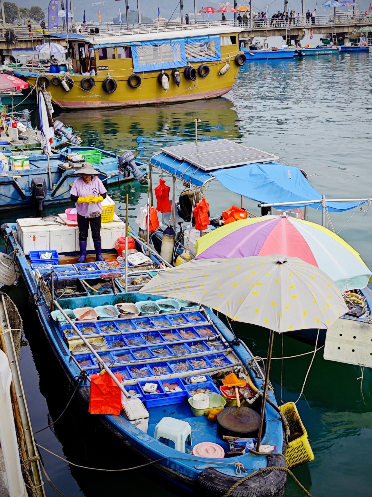 这里吃海鲜的好地方,海边到处都是海鲜酒家。最得意的还是卖海鲜的渔船,所有海鲜分类摆在小盒子里面,整整齐齐,海鲜种类一目了然,估计最先用这种格仔的渔夫是处女座的。
