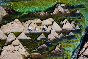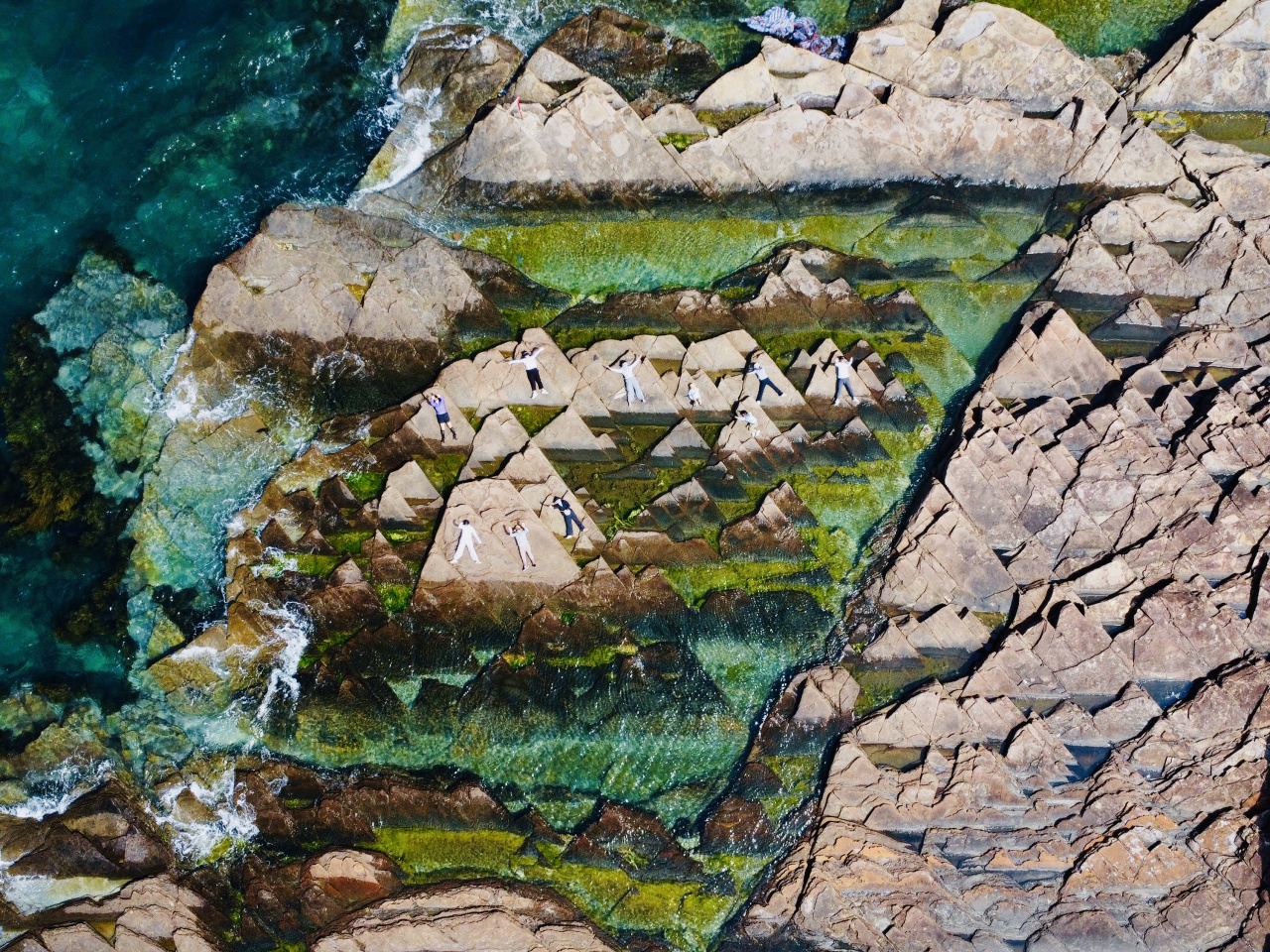 因其独特的自然景观而被誉为现实版的“千里江山图”。这一美誉来源于岛上一种特殊的自然现象,尤其是在退潮时和通过航拍视角观察,东平洲的页岩地貌与海水相互映衬,形成了类似中国古典名画《千里江山图》的画面效果。