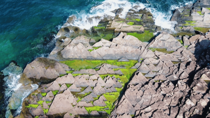 《千里江山图》是北宋画家王希孟的杰作,以其绚丽的色彩和宏大的山水布局展现了壮丽的自然风光。东平洲的“千里江山图”则是大自然的杰作,页岩在海水和光照的作用下显现出丰富多变的颜色,从褐红、锈黄到墨绿、青紫,宛如一幅生动的山水画卷铺展在海上。