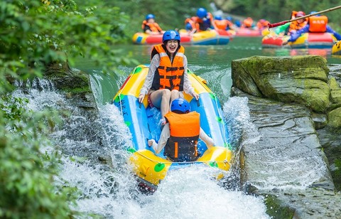 无敌漂:全长6350米,总落差391米,其中最大落差57米,连续467米、近90度的急流落差,漂程约140分钟。