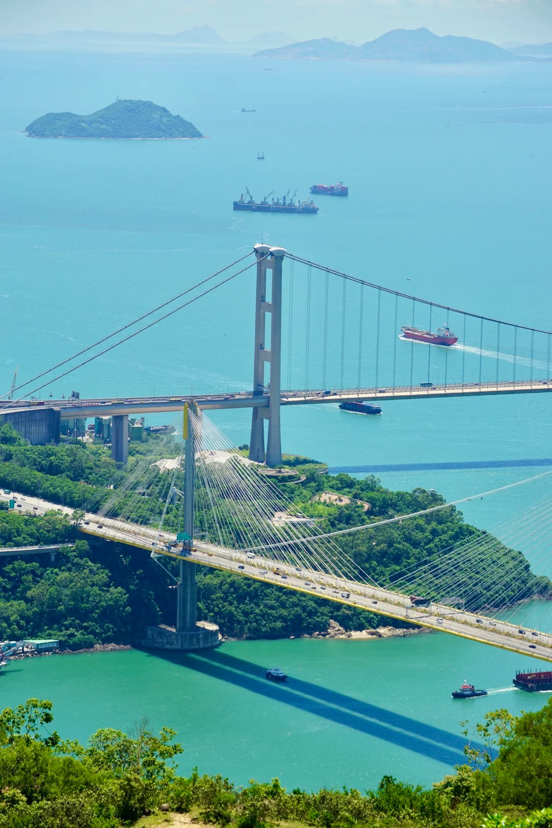 其中于1997年开通的青马大桥,全长1.377公里,横跨马湾海峡,曾经是全球最长的行车及铁路双用悬索吊桥,也是香港地标建筑之一。