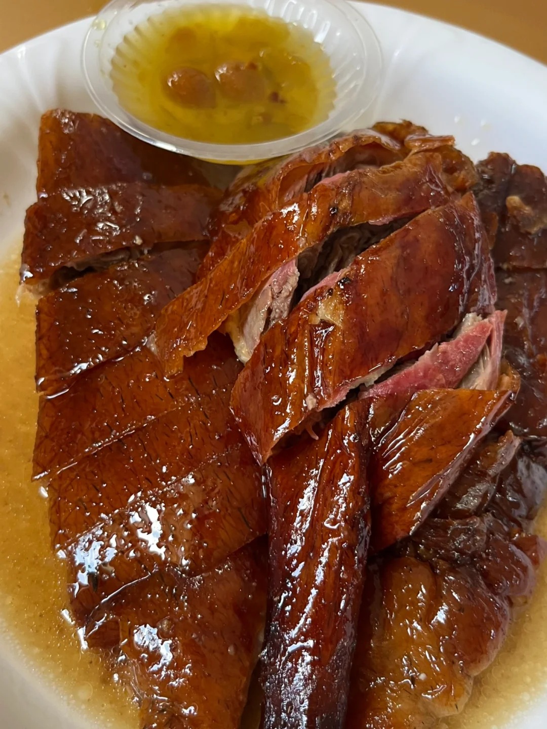 烧鹅自古由烤鸭演变而来,南宋御厨入粤后就地取材以鹅代鸭,由此创制出广式烧鹅 。香港深井烧鹅源于上世纪五十年代,深井位于香港新界荃湾,当时工业兴起吸引众多潮州人迁入。一位潮州人将烧鹅美食引入深井,采用经典炭烧制法深受工人们喜爱。【深井烧鹅】便逐渐成为香港深井的美食名片。