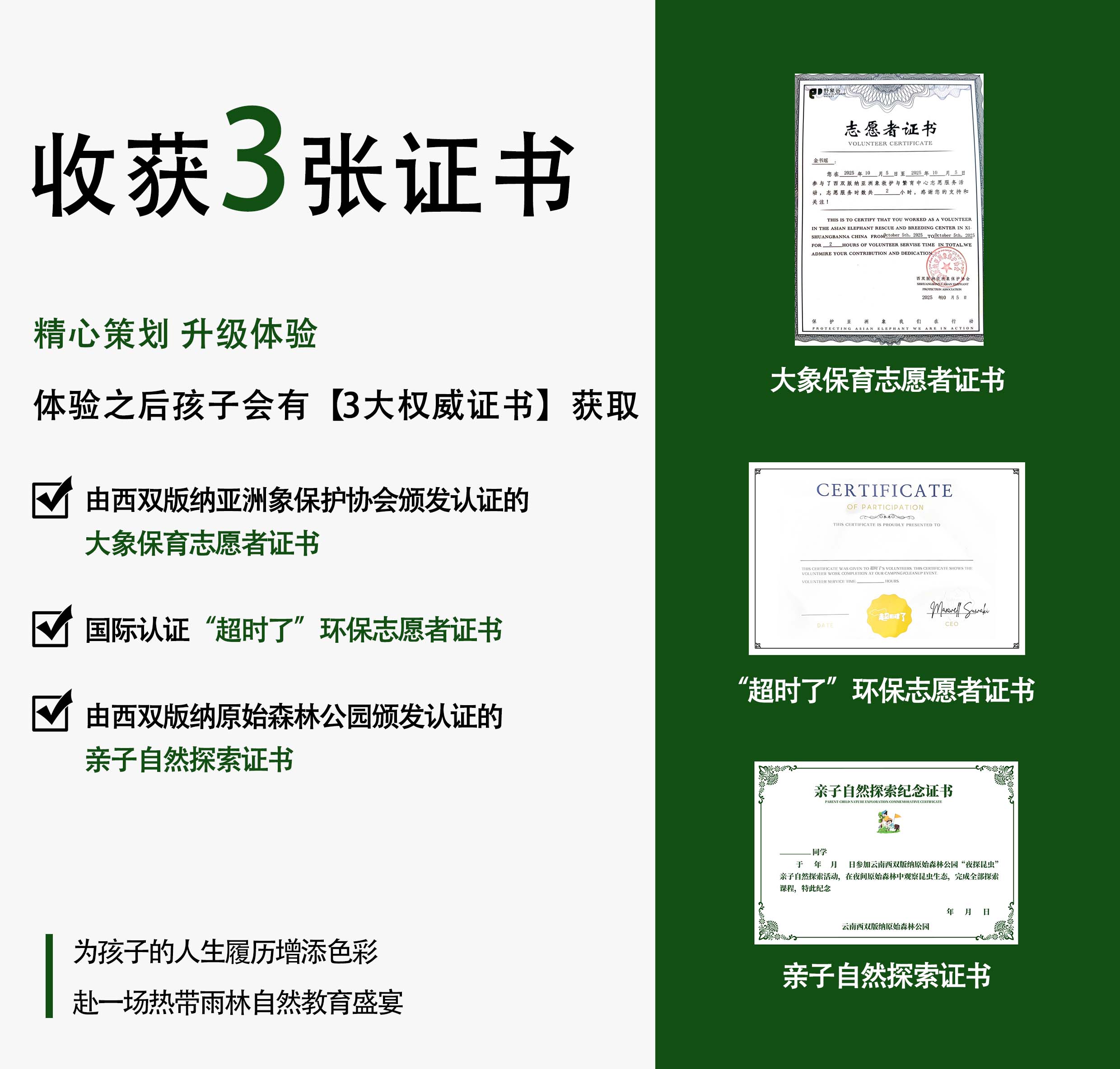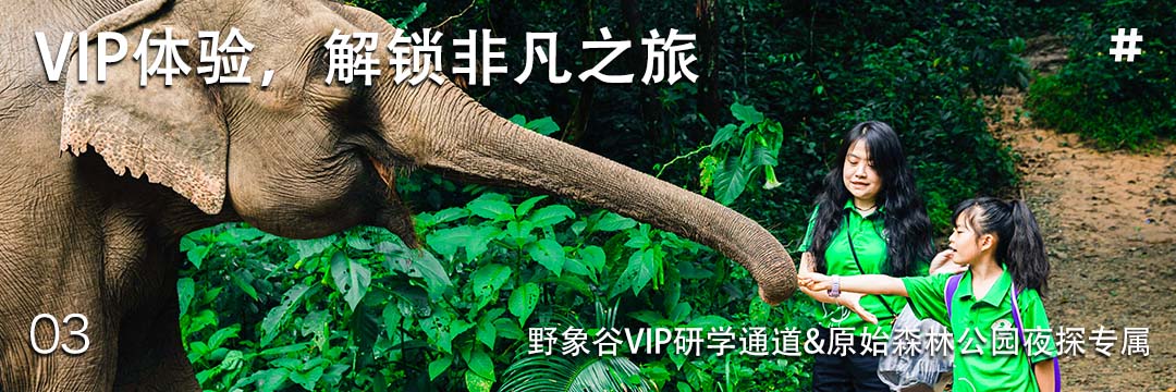 注:根据野象谷保护区当日安排来确认大象保育实践课内容:【大象博物馆+雨林牧象或大象营养师】+大象亲密接触