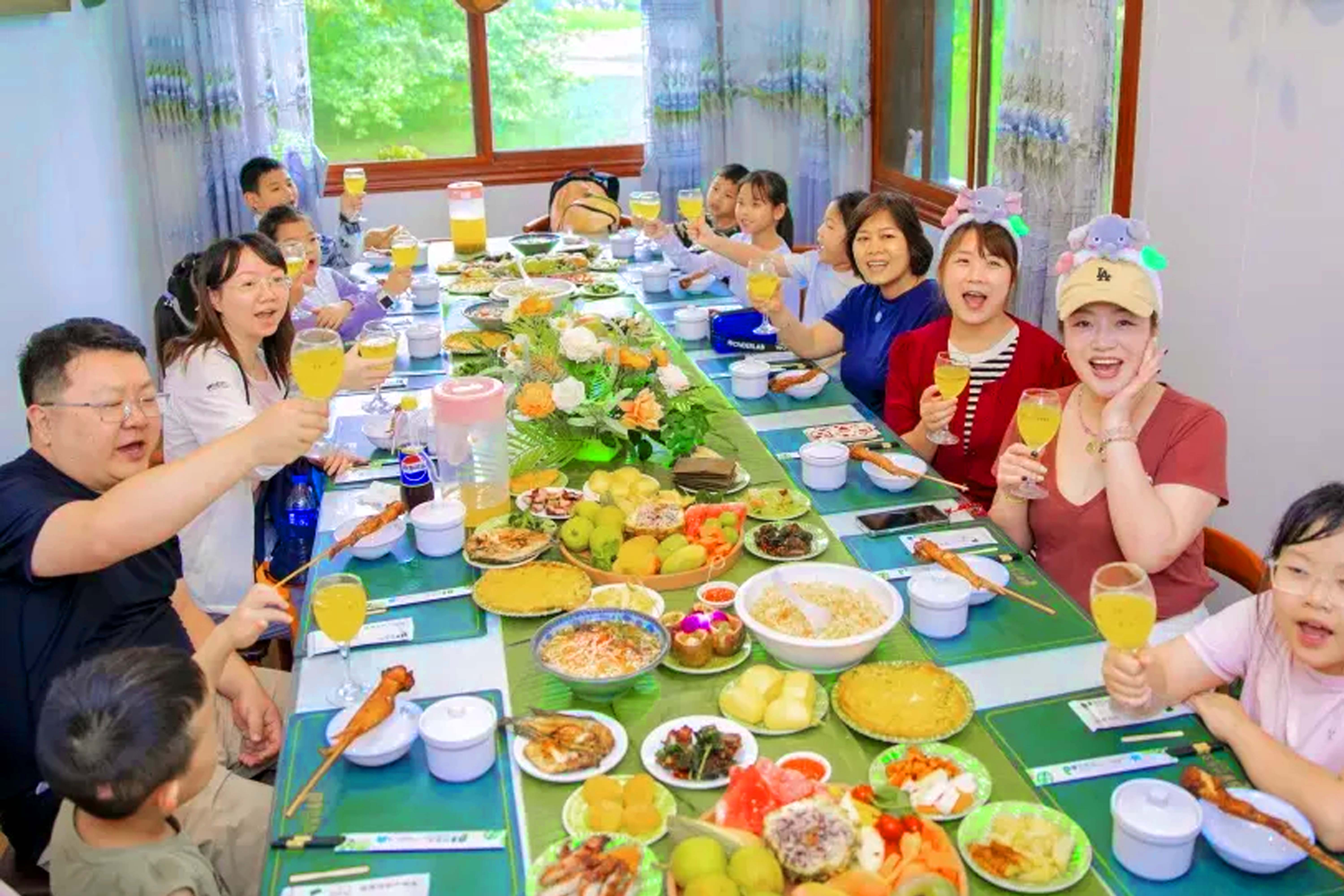 精选大象喜爱的时令果蔬与傣味搭配,于湖心岛包间专享生态象餐