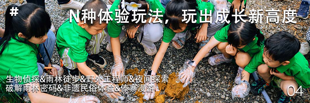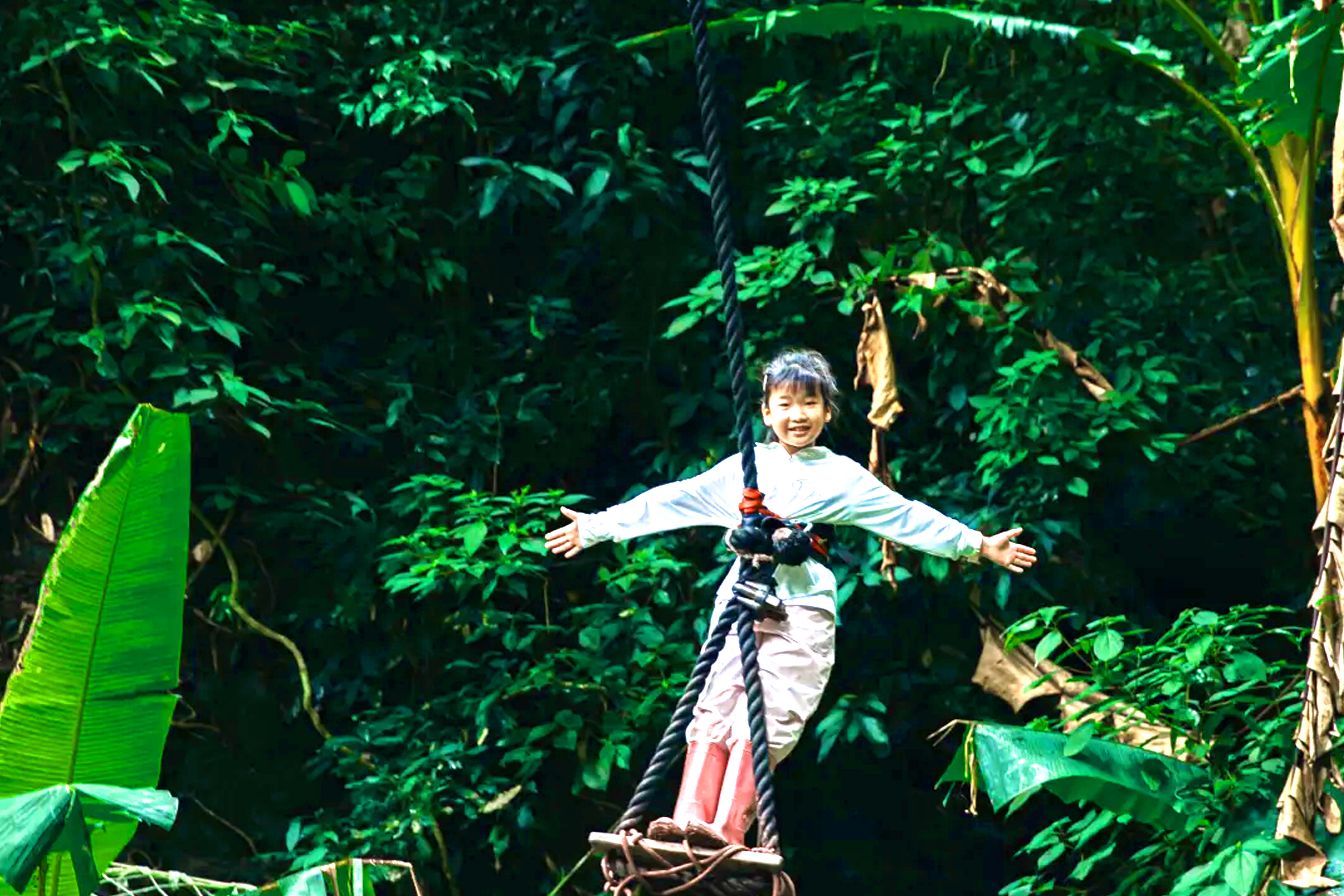 我们将化身雨林挑战者!攀爬千年绞杀榕、荡秋千、大树速降……挑战雨林高空生存技能,突破自我边界。当孩子们成功完成高空挑战时,收获的不仅是证书,更是面对困难的从容与自信
