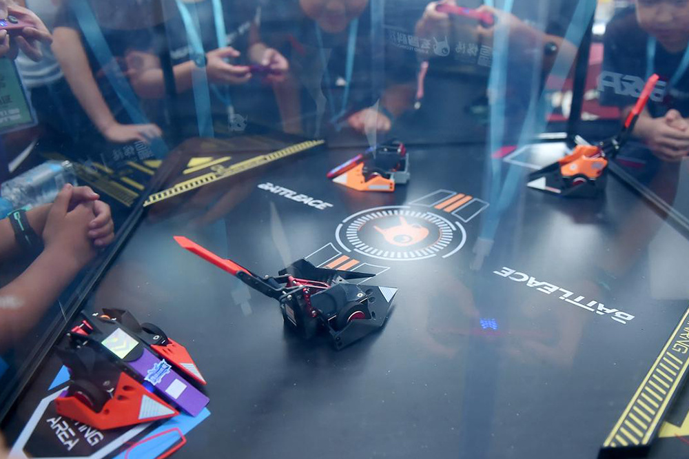 13:30适时前往哈工大校外实训基地进行竞技机器人研学课程,这里的主创团队和运营团队都为哈工大毕业学子,在他们的带领下我们将了解竞技机器人的历史和发展情况,并且亲自上手操作竞技机器人进行分组对抗!