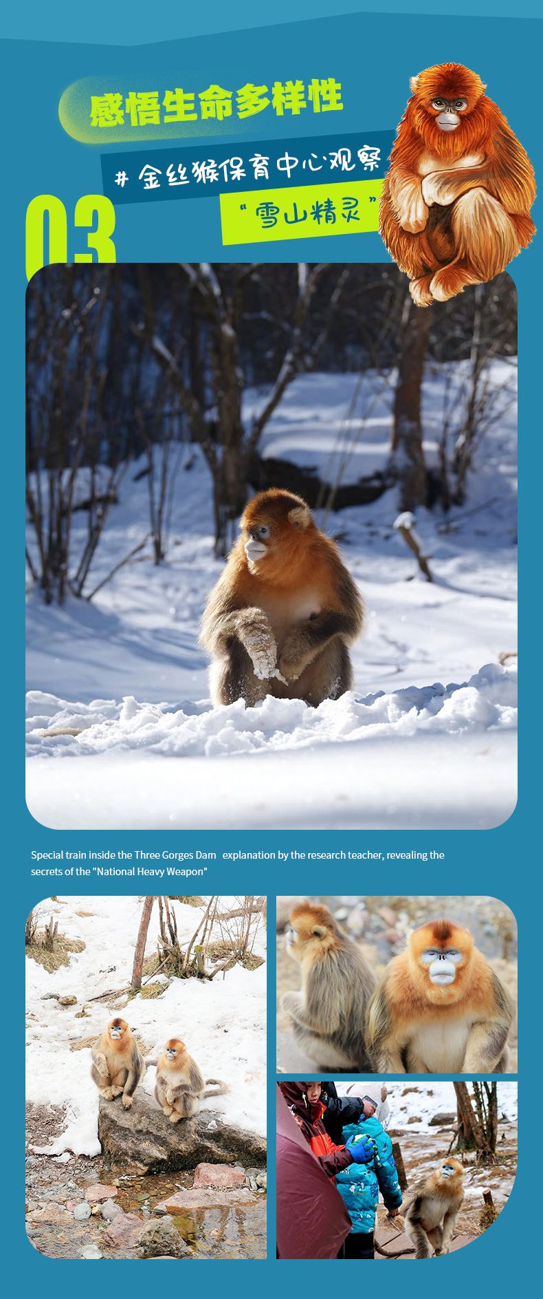 滑雪+金丝猴+三峡大坝