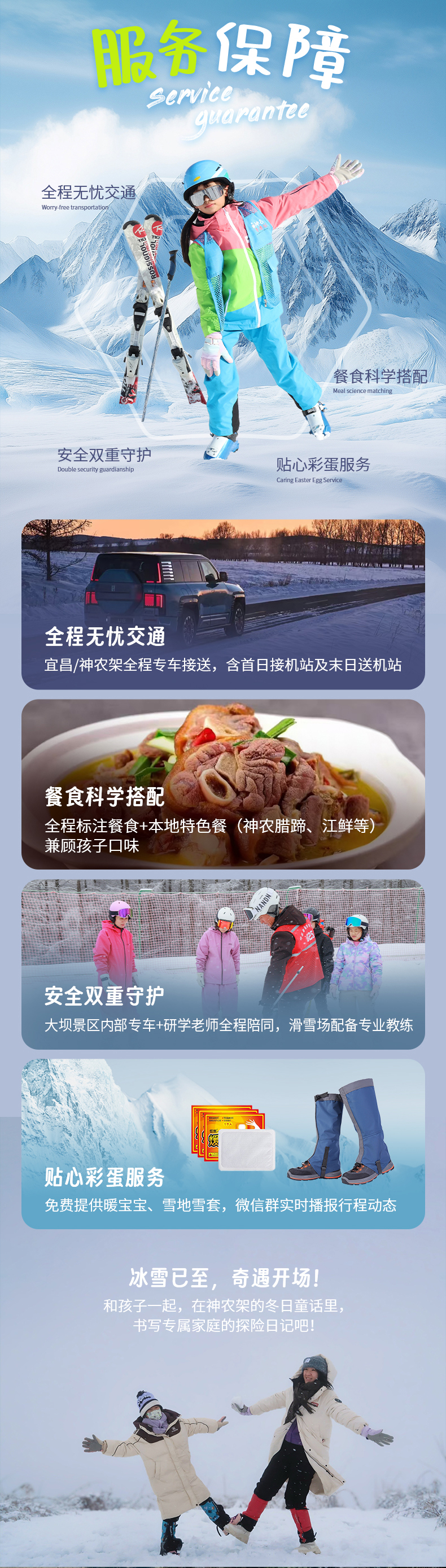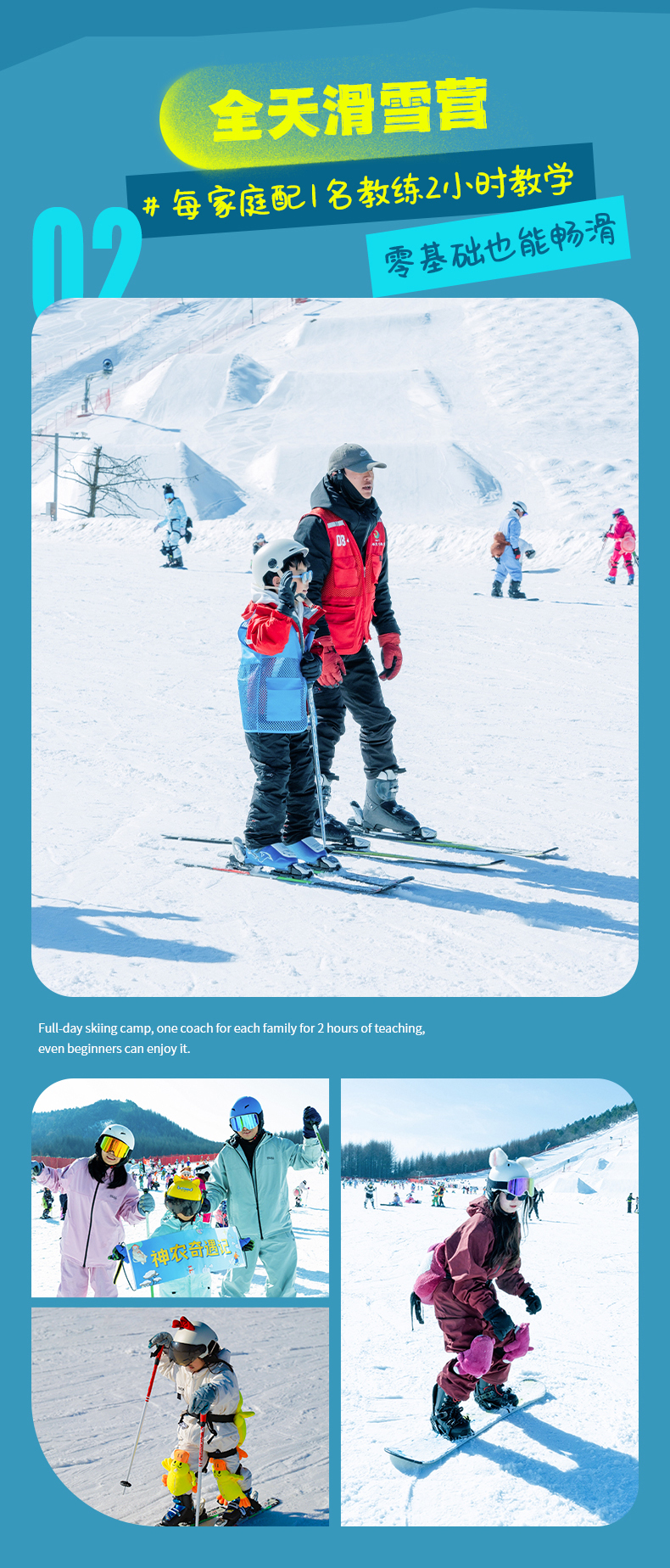 下午的时间都属于你和宝贝,可以自由在雪场驰骋,尽享亲子时光。
