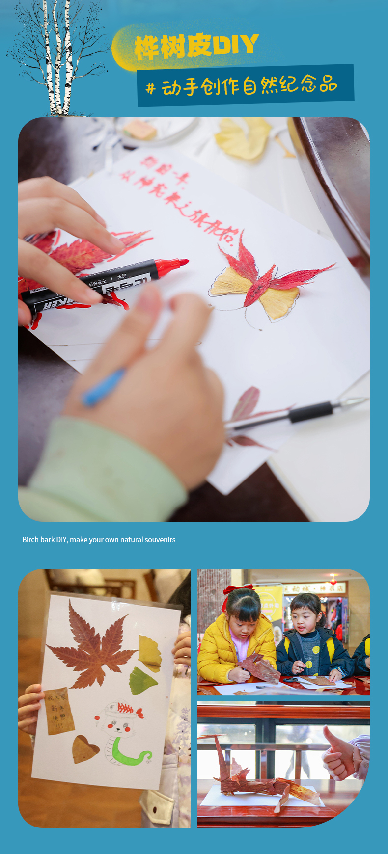 晚上:我们将把自己捡到的桦树皮进行创造,大家按照自己的想法画出漂亮的图案;