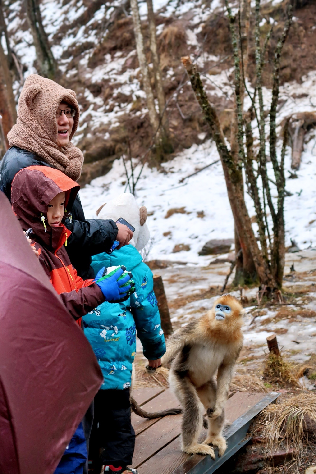 Day 3 酒店-大龙潭(金丝猴)-神农顶雪原轻徒步(冰瀑,雪原穿越、嬉戏、寻找动物脚印)-木鱼镇),桦树皮画;