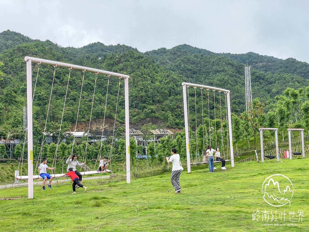 魔法森林里可以荡秋千、跳蹦床、滑超长滑梯、在大草坪上自由的奔跑,还有电影《霍比特人》同款小屋,晴天下的阳光洒落 在霍比特小屋,周围被郁郁葱葱的草坡包围着,背靠重重叠叠青云山脉,还原了《霍比特人》 的场景,随手就能拍出童话感的美照